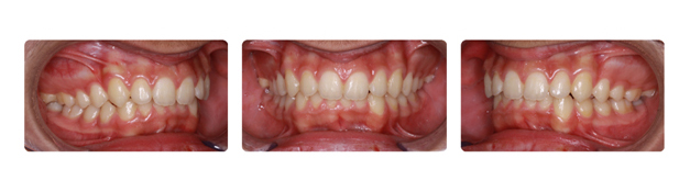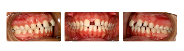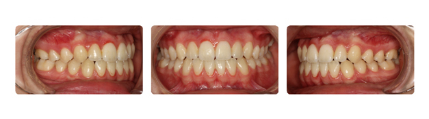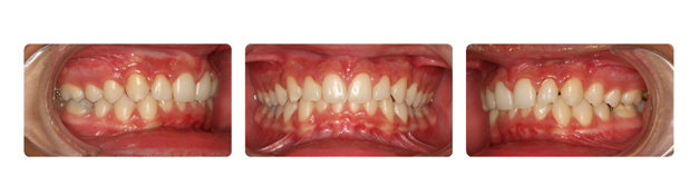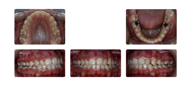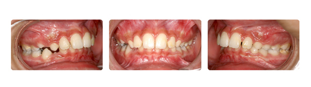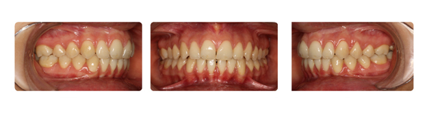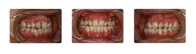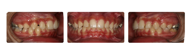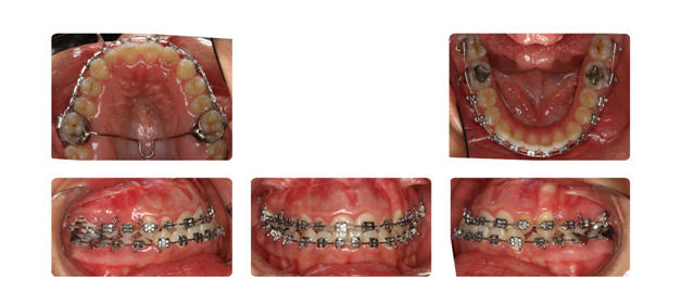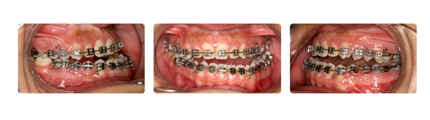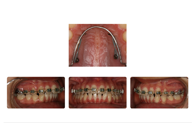 پس از گذشت دوسال درمان متحرک و همچنین ارتدونسی ثابت, دندانها وفک به وضعیت قابل قبولی رسیده است: |