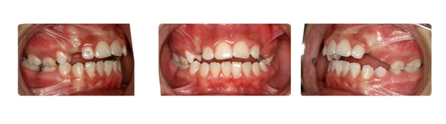فک بالا جلوتراز فک پایین و روی دندانهای فک پایین قرار گرفته است وچون از سن رشد نگذشته در ابتدا با پلاک متحرک درمان شروع میشود . |