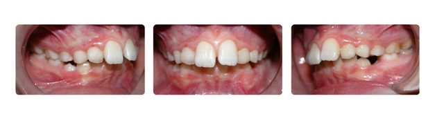 فک بالا جلوترازفک پایین بوده وهمچنین روی هم قرار نمیگیرد و بدون کشیدن دندان و توسط پیچ های مینی اسکرو درمان میشود : |
